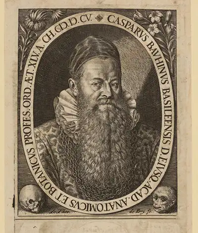 Abb. 6: Johann Theodor de Bry, Porträt des Caspar Bauhin, aus: Caspar Bauhin: De hermaphroditorum monstrosorumque partuum natura ex Theologorum, Jureconsulorum, Medicorum, Philosophorum, et Rabbinorum sententia (…), Bd. 2, Oppenheim 1614