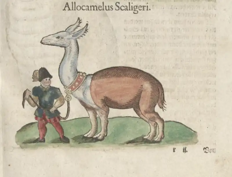 Abb. 8: Lama (“Allocamelus”), aus: Conrad Gessner, Thierbuch/ Das ist/ Außführliche beschreibung/ und lebendige ja auch eigentliche Contrafactur und Abmahlung aller Vierfüssigen thieren/ so auff der Erden und in Wassern wohnen (…), Heidelberg 1606