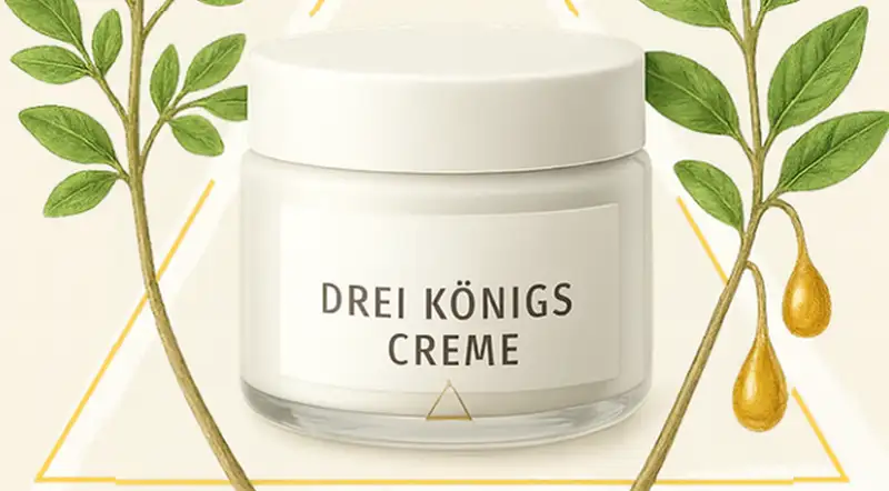 Die Quinta Essentia «Drei Königs Creme» ist eine hochwertige, naturkosmetische Pflegekomposition, die drei der bedeutendsten Substanzen der alten Heilkunst vereint: Weihrauch (Boswellia spp.), Myrrhe (Commiphora myrrha) und Gold (Aurum). Diese drei Stoffe gelten seit der Antike als Symbole für Reinigung, Regeneration und Veredelung – sowohl auf körperlicher als auch auf seelisch-geistiger Ebene.