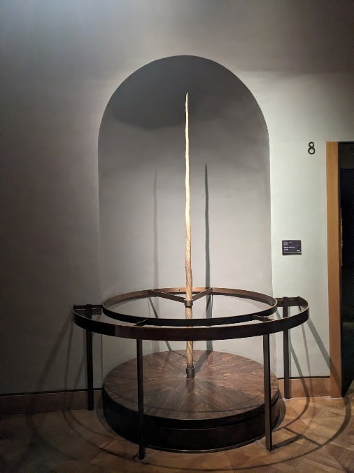 Das vermeintliche Horn des Einhorns war ein begehrtes, wenn auch sehr seltenes Sammelobjekt. Es war nur in wenigen weltlichen oder geistlichen Schatzkammern zu finden. In einer Abbildung von der Sammlung des bereits erwähnten Ole Worm, dem „Museum Wormianum“, ist ein Horn / Stoßzahn auf dem Regal an der Stirnwand zwischen kleinen Schachteln mit verschiedenen Metallen und Mineralien auszumachen. Ein Schädel mit Zahn lehnt neben dem Fenster (Abb. 6). Die Habsburger erklärten ihr Exemplar – ein imposanter Narwalzahn von 2,43 m Länge – zu einem der „unveräußerlichen Erbstücke des Hauses Habsburg“. Das sogenannte „Ainkhürn“ sollte stets im Besitz des ältesten Nachkommen verbleiben (Abb. 8). Auch der Schaft des Szepters, das 1615 als Teil der kaiserlichen Krönungsinsignien geschaffen wurde, besteht aus diesem Material (Abb. 9).