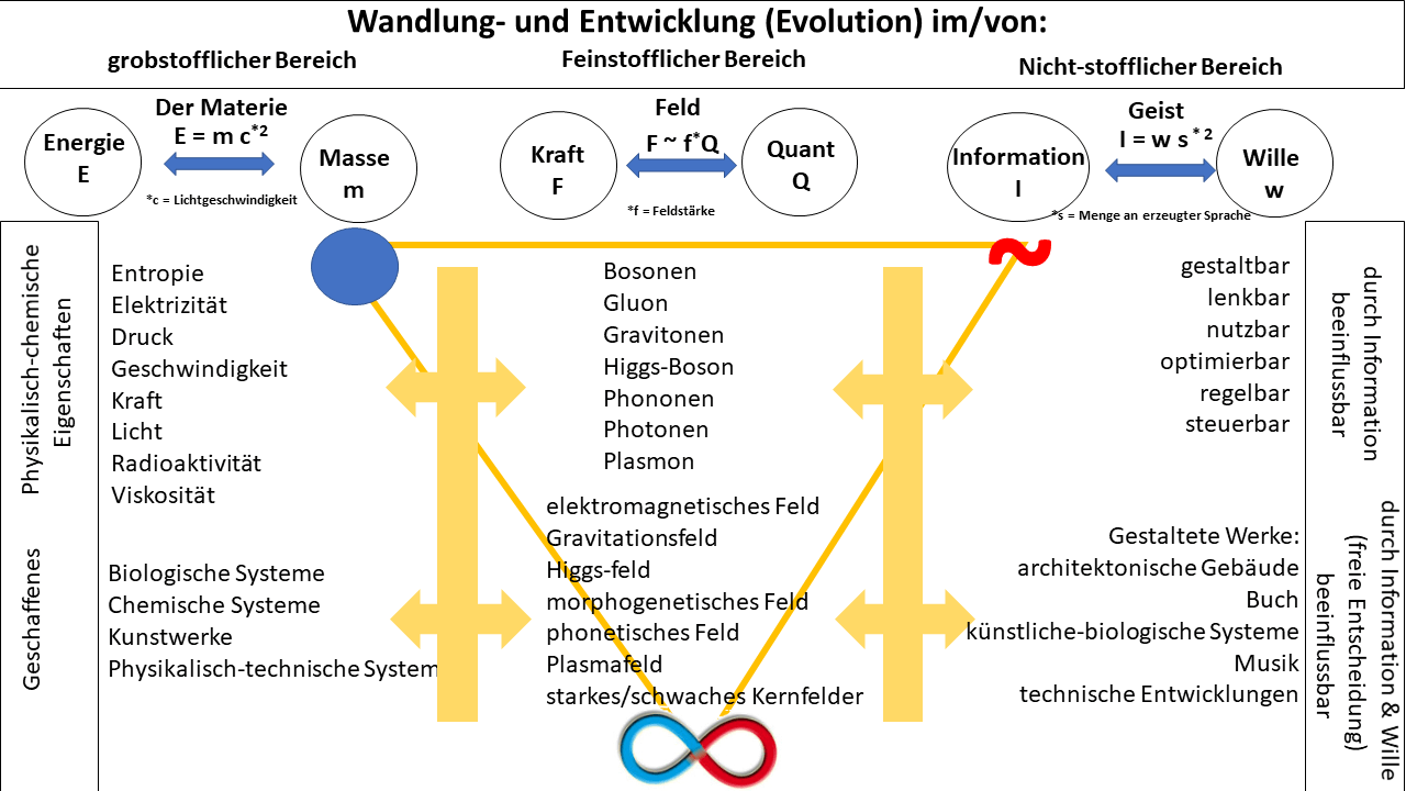 Dabei werden Informationen in Kraft überführt, woraus der Wille entsteht. Wille ist somit die Kraft, die aus der Wandlung und Entwicklung des Geistes entsteht. Die physikalische Kraft «Wärme» entsteht also aus der Wandlung und Entwicklung der Materie. Wille ist somit Bewegungsausdruck der Gedanken und Gefühle.