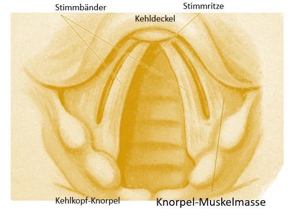 Die Stimmbänder sind mit einer Knorpel-Muskelmasse verbunden. Durch die Stimmritze, gebildet von den Stimmbändern, fließt ein Luftstrom, der beim Ausatmen durch die Lunge erzeugt wird. Durch die Muskulatur der Stimmbänder kann sich jede Vibration, in der die Muskeln durch die verschiedensten Hormone versetzt werden, auf den Luftstrom übertragen. Luftstrom und Vibration bilden dann das Klangbild, in der jedes gesprochene „A“ eingebettet ist.