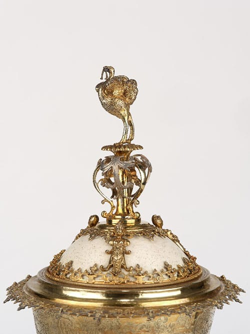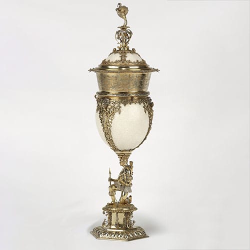 Abb. 7 und 8: Georg I. Rühl, Straußeneipokal mit Deckel, ca. 1615, Nürnberg, Germanisches Nationalmuseum, Inv. Nr. HG11771 (Foto: Georg Janßen) Quelle